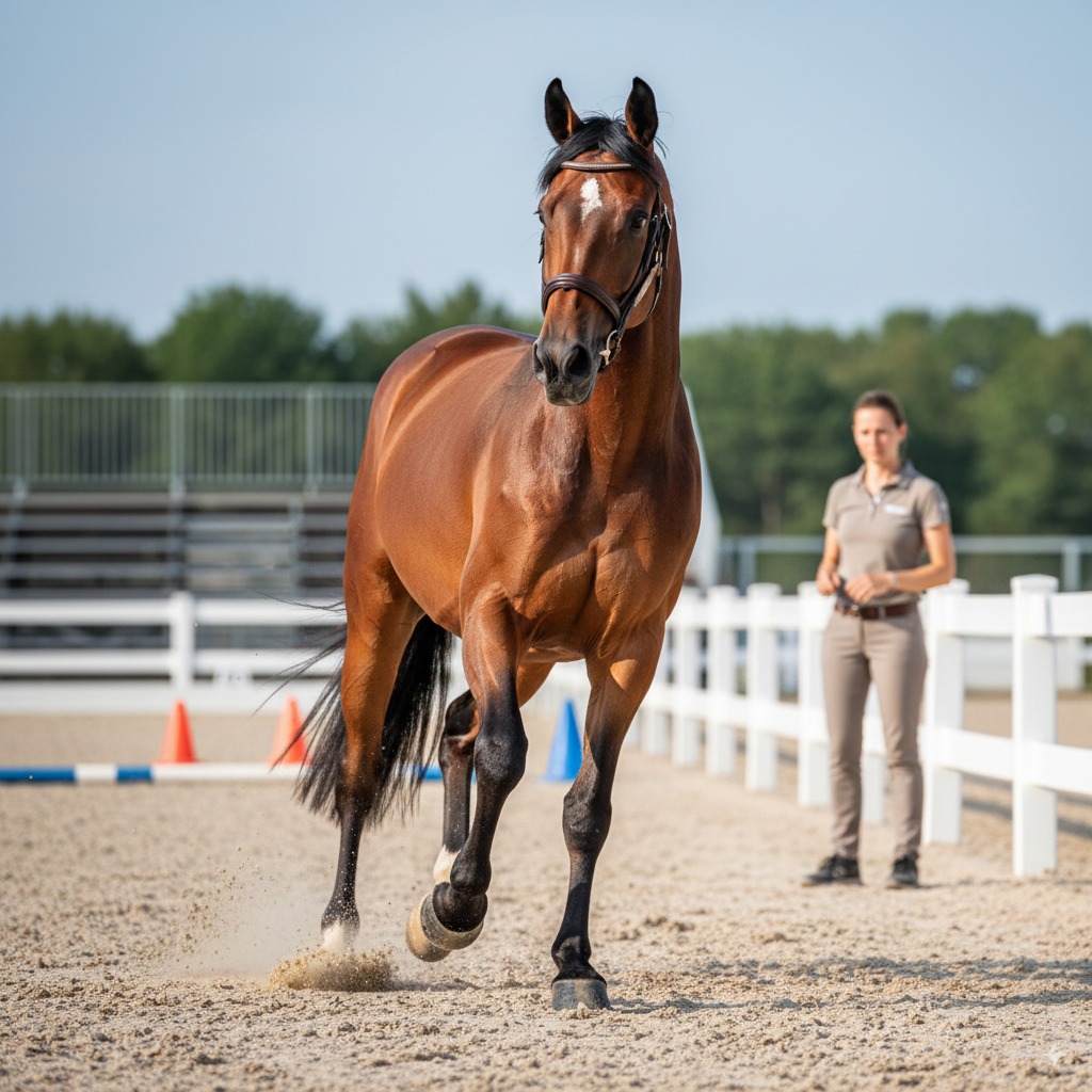 - Montre une gêne dans les transitions, les changements d’allures ou les sauts